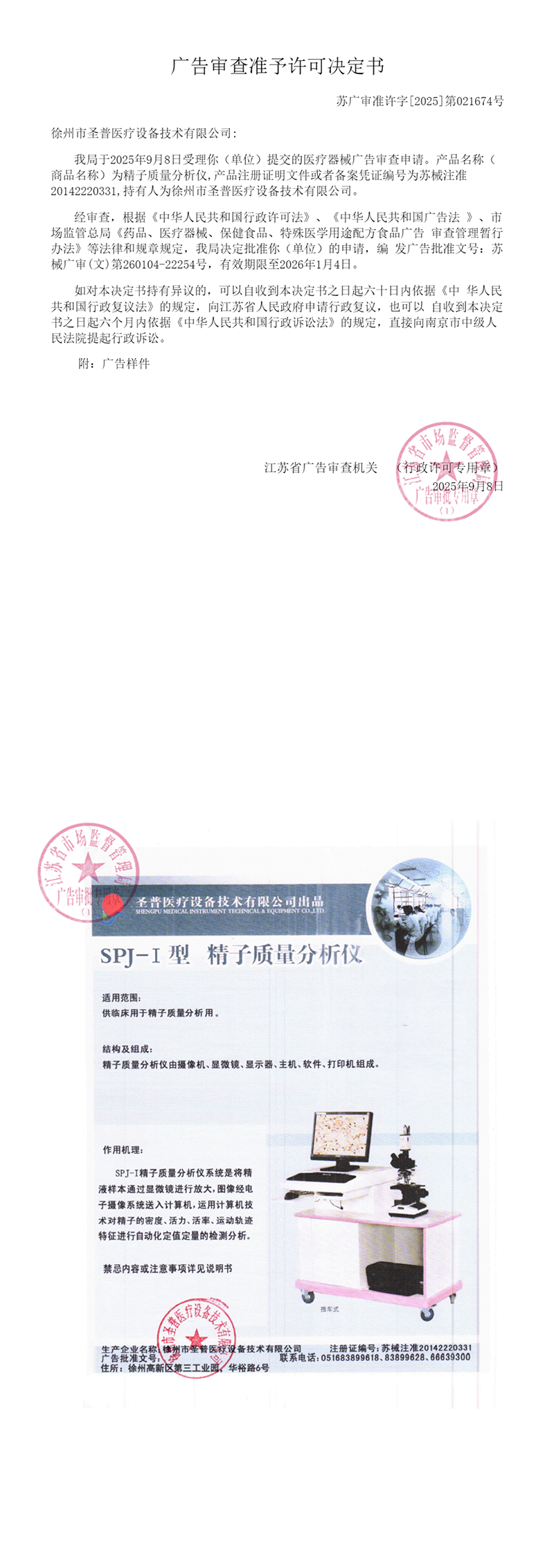 精子質量分析儀廣告審批